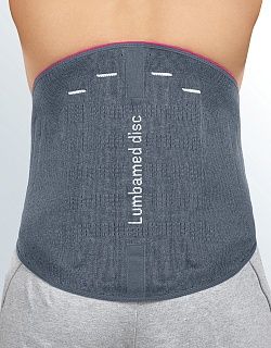 Поясничный бандаж-корсет LUMBAMED DISC оказывает эффективную помощь при лечении грыжи межпозвонкового диска и других заболеваниях поясничного отдела позвоночника. Компрессия вязанной манжеты улучшает кровообращение и питание тканей, что уменьшает отек и связанный с ним болевой синдром. Модульный дизайн (противоупор и ребра жесткости двух степеней жесткости) позволяет менять степень стабилизации в соответствии с этапом лечения. Рёбра жёсткости стабилизируют позвоночник, ограничивая болезненную подвижность поясничного отдела позвоночника, что уменьшает интенсивность болевого синдрома (возможен заказ дополнительного комплекта пластин с большей степенью подвижности для использования бандажа вне обострения).